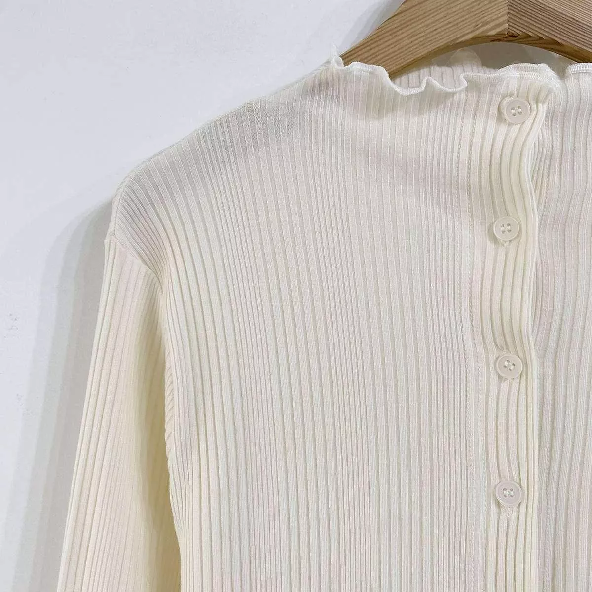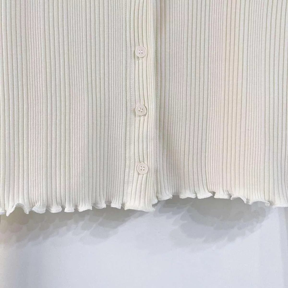 ✓ Made In Korea細緻壓紋針織,柔軟親膚觸感,搭配荷葉邊與包扣設計,增添優雅氣息。修身剪裁襯托曲線,單穿或外搭皆迷人。